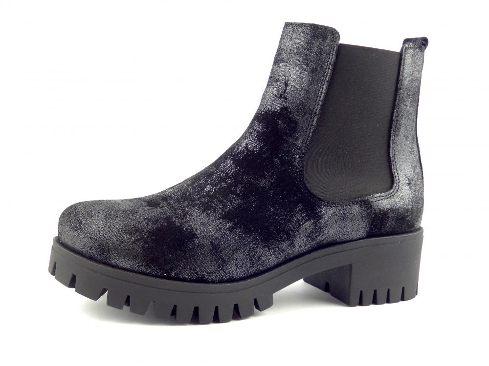 Eleganntní obuv na zvýšené podešvi a na podpatku. Svršek je vyroben z kůže v černé barvě a stíranou stříbrnými odlesky. Podšívka mírně zateplená, podešev dobře izoluje.