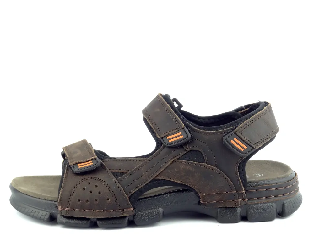 Pánský kožený sandál Selma. Velmi dobře řešený systém aretace obuvi pro Vaše chodidlo - celkem 3x nastavitelný pásek na suchý zip - na patě, nártu a na špičce. Stélka je kožená a vyměkčená. Podešev je flexibilní a komfortní. Jedná se o pohodlnou a kvalitní koženou obuv za dobrou cenu. Doporučujeme.